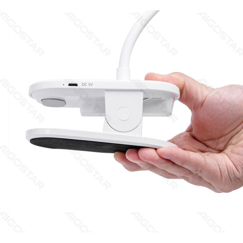 This flexible light features an adjustable gooseneck that can be bent to any angle to meet your lighting needs. The maximum opening of the clip is five to six centimeters. The clip also features nonslip rubber that can be easily fixed in different places, and prevents the clip light from slipping and being damaged. The gooseneck of this reading light is so flexible that it can be bent, folded, and easily stored in a backpack for outdoor use.