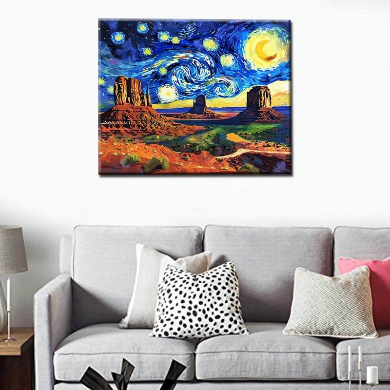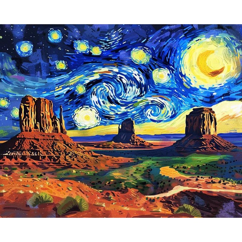 Aihonmin Monument Valley Paint by Numbers Kits Children,Starry Night Paint by Numbers Native America Landscape Easy Acrylic on Canvas Unique Gift Art Crafts for Home without Framed 16''W x 20''H
