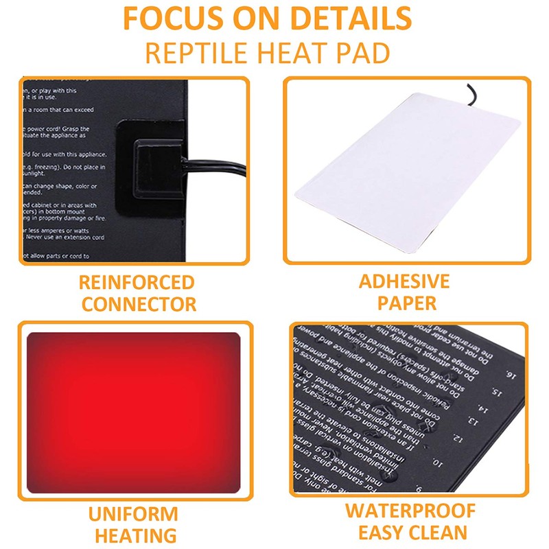 - [Application] – This reptile heat mat is suitable for spider, tortoise, snake, lizard, frog, scorpion and other small pets and reptiles, provide ideal heat and keep your pets warm in cold environment.