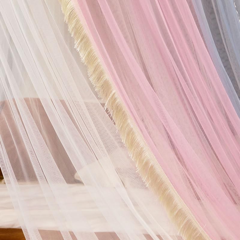 AIKASY Princess Bed Canopy for Girls & Adults, Elegant Double-Layer Bed Curtain, Children's Dream Round Lace Mosquito Net - Fits Twin, Full, Queen, and King Beds(Pink/Grey/White)
