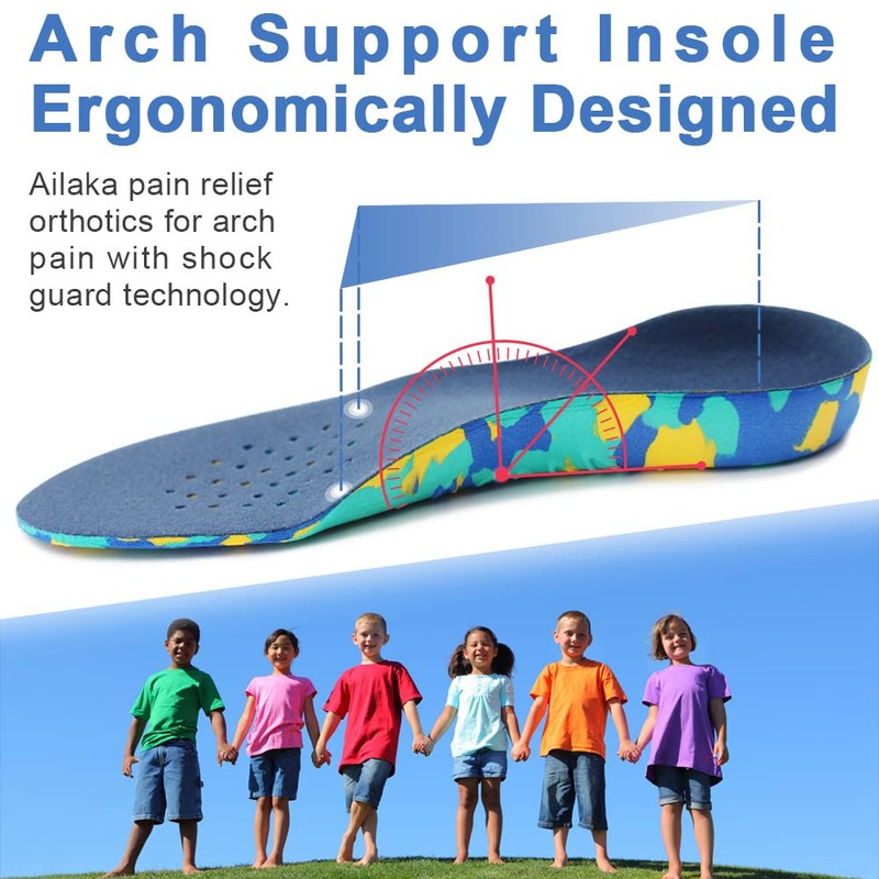 Ailaka Plantillas ortopédicas para niños, plantillas de apoyo de arco para zapatos, inserciones de espuma EVA para pies planos, fascitis plantar