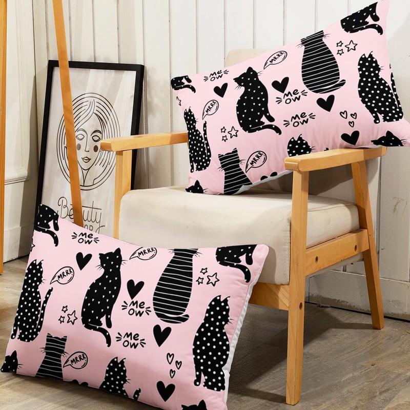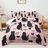 AILONEN Black Cat Comforter Set Queen Size,Pink and Black Soft Microfiber Kitted Bedding Set,3-Piece Cat Lover Bedroom Comforter with 2 Pillowcases