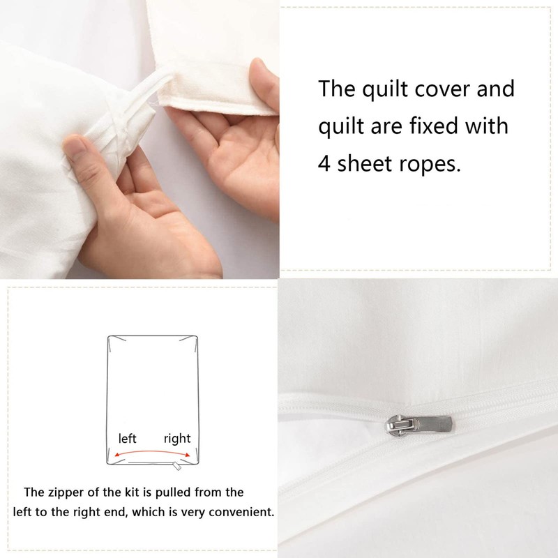 - 🤗【Exquisite Zipper And Corner Collar】 Open the invisible zipper and put in your duvet so that it can be used. Each corner of the duvet cover has a corner tie. The duvet cover can easily fix the quilt.