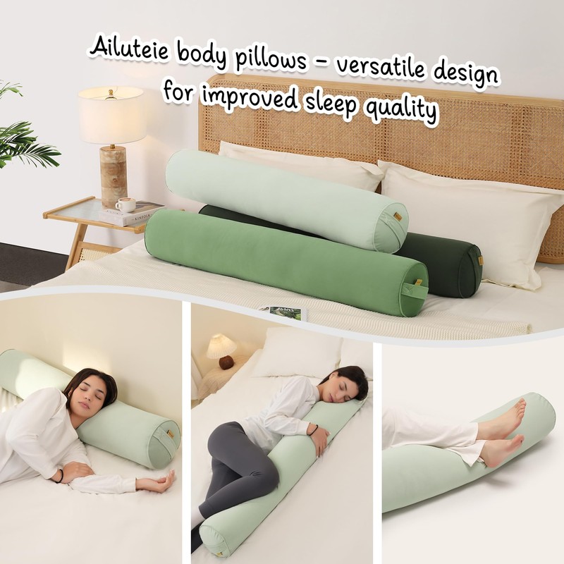 Ailuteie Bolster Pillow for Bed – Long Round Body Pillow for Adults, Cuddle Pillow for Sleeping, Full-Length Support,39 x 7.87 Inches,Celadon Green