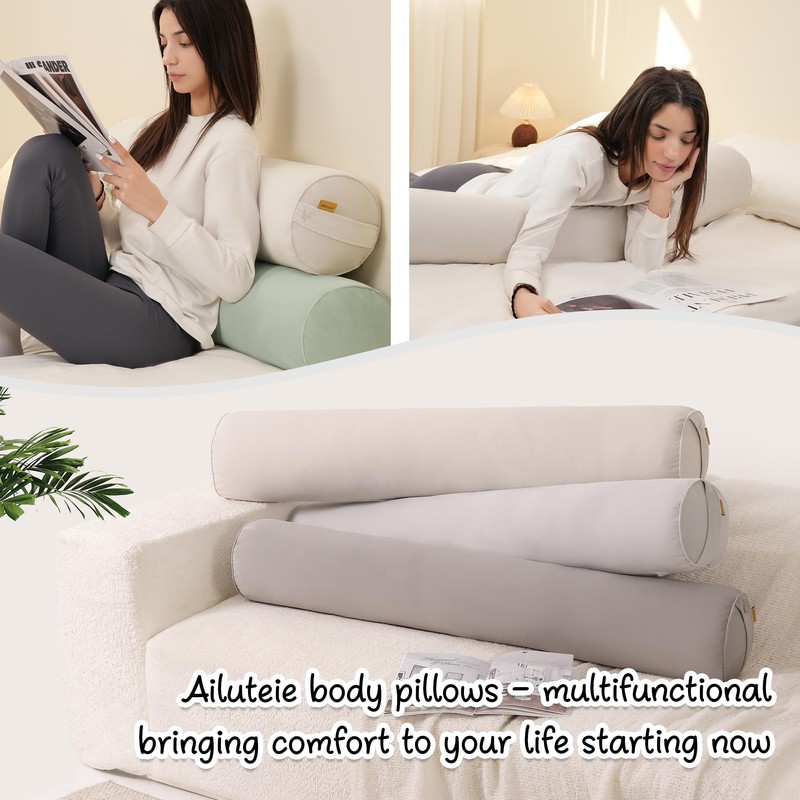 Support & Comfort. Body pillows provide better support, especially when lying on your side. The shape of the round body pillow conforms to the body's curves and reduces the gap between the body and the bed surface, improving sleep comfort. For those who like to cuddle, the cylindrical pillow provides a firm support that helps relax the body to fall asleep faster and maintain deep sleep. Versatility. The versatile body pillow is not limited to being used as a pillow for sleeping, but can also be used in a variety of other scenarios, such as leaning back to read, watch TV, or as lumbar support while working. It can also be used as an aid during relaxation activities such as yoga or meditation to provide the necessary support and comfort. Improve Sleeping Posture :. For people who suffer from neck, back or shoulder pain due to improper sleep posture, a cylindrical pillow can help them adjust their sleeping position, thus reducing pain. The cylindrical shape helps maintain the natural curve of the spine and reduces discomfort caused by improper sleeping posture.