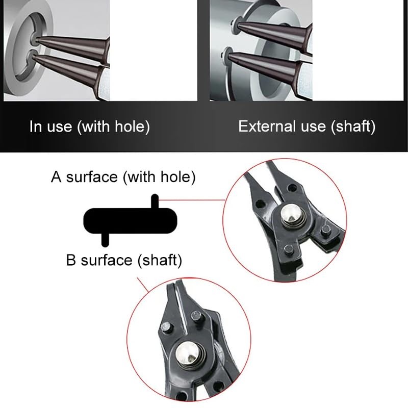 - 🛠️ Multi-Function Design: Includes four interchangeable tips (straight, 45-degree, and 90-degree bent), making it a versatile tool for various circlip applications.