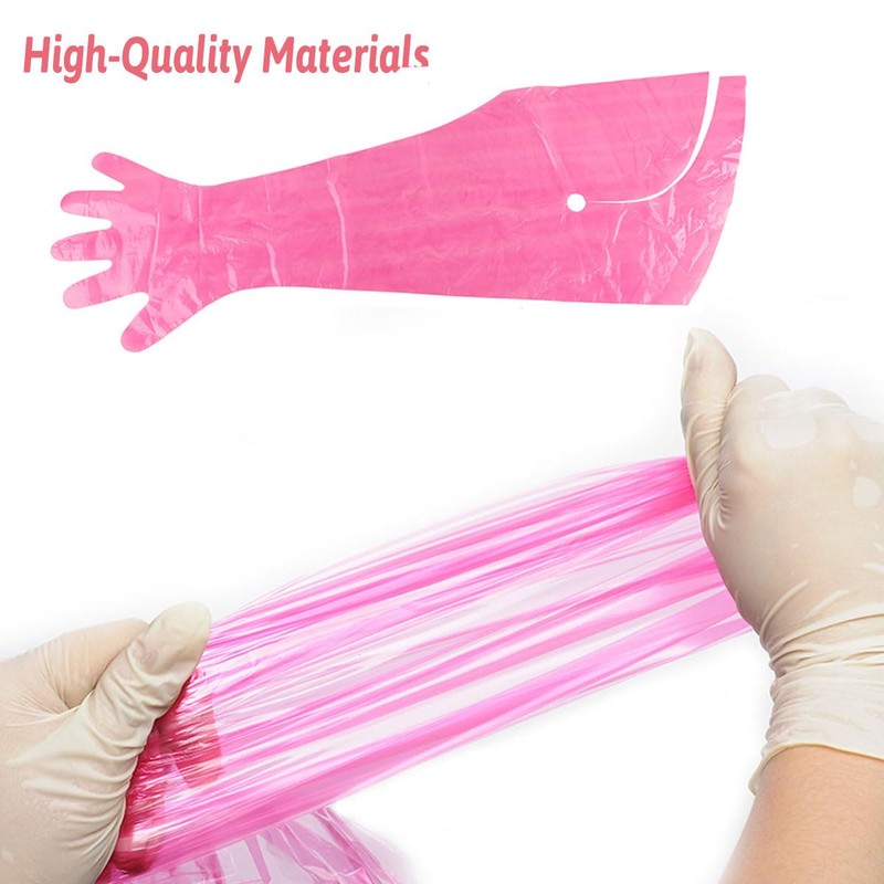 AIMALL 50PCS Disposable Veterinary Long Arm Gloves 37.4 Inch Pink Shoulder Length Gloves Tear Resistant Elastic PE Gloves for Farm and Animals