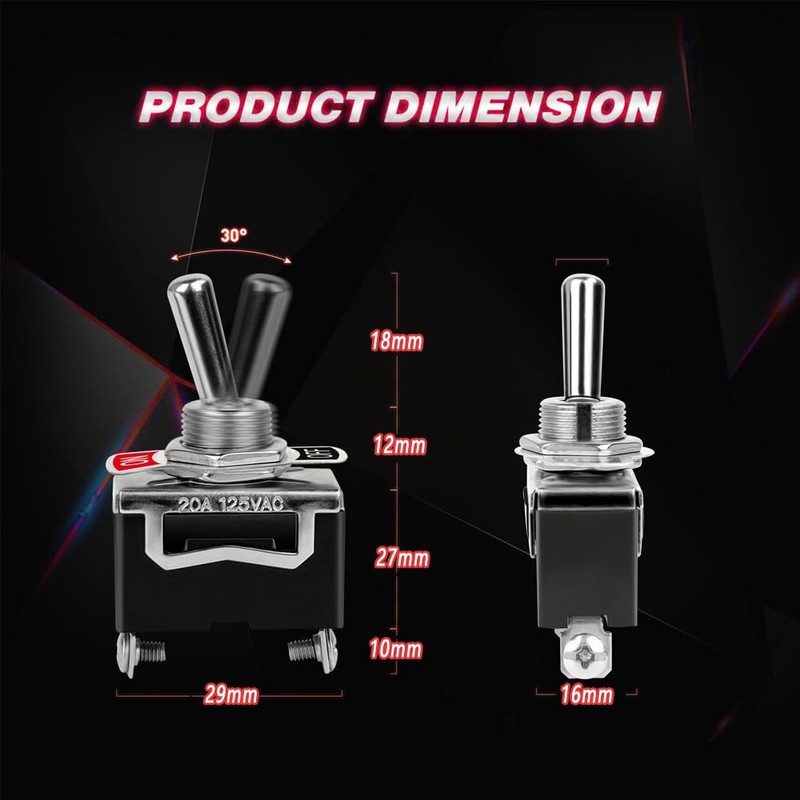 Each toggle switch comes with a waterproof boot that protects it from dust, moisture, and water splashes, making these switches ideal for use in automotive, marine, or outdoor environments where they may be exposed to the elements.