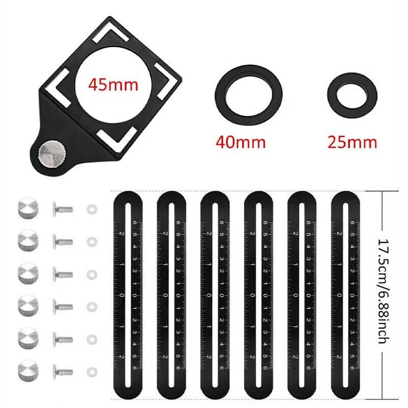 The AIMALL Universal Angularizer Ruler revolutionizes precision and efficiency in your projects. Constructed from durable aluminum alloy and plastic, this versatile tool is designed to stand up to the rigors of regular use while resisting corrosion for a lifespan that outperforms conventional rulers. With a length of 6.89 inches and a scale of 4.72 inches, this 6-fold measuring ruler adapts to any project, featuring multiple hole diameters for precise marking and layout on various materials.