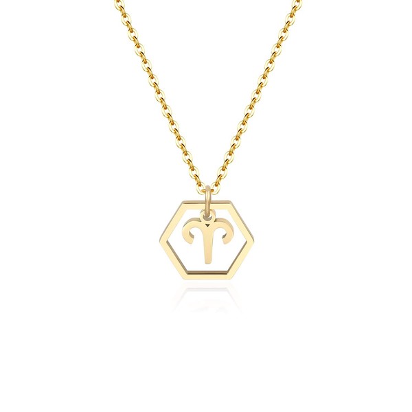 Aimber 18K Gold Plated Hexagon Initial Necklace 12 Zodiac Sign Pendant Necklace Horoscope Birth Stainless Necklace for Women Teen Girls Jewelry Gifts