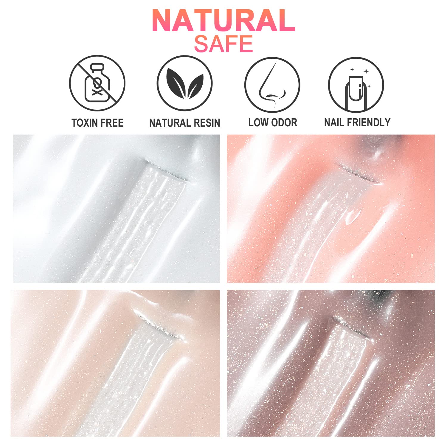 AIMEILI Nude Semi-Permanent Nail Polish Kit, 4 Colors 10ml Glitter Pink White Spring Gel Soak Off UV LED - Nail Art Polish Gift Set 29