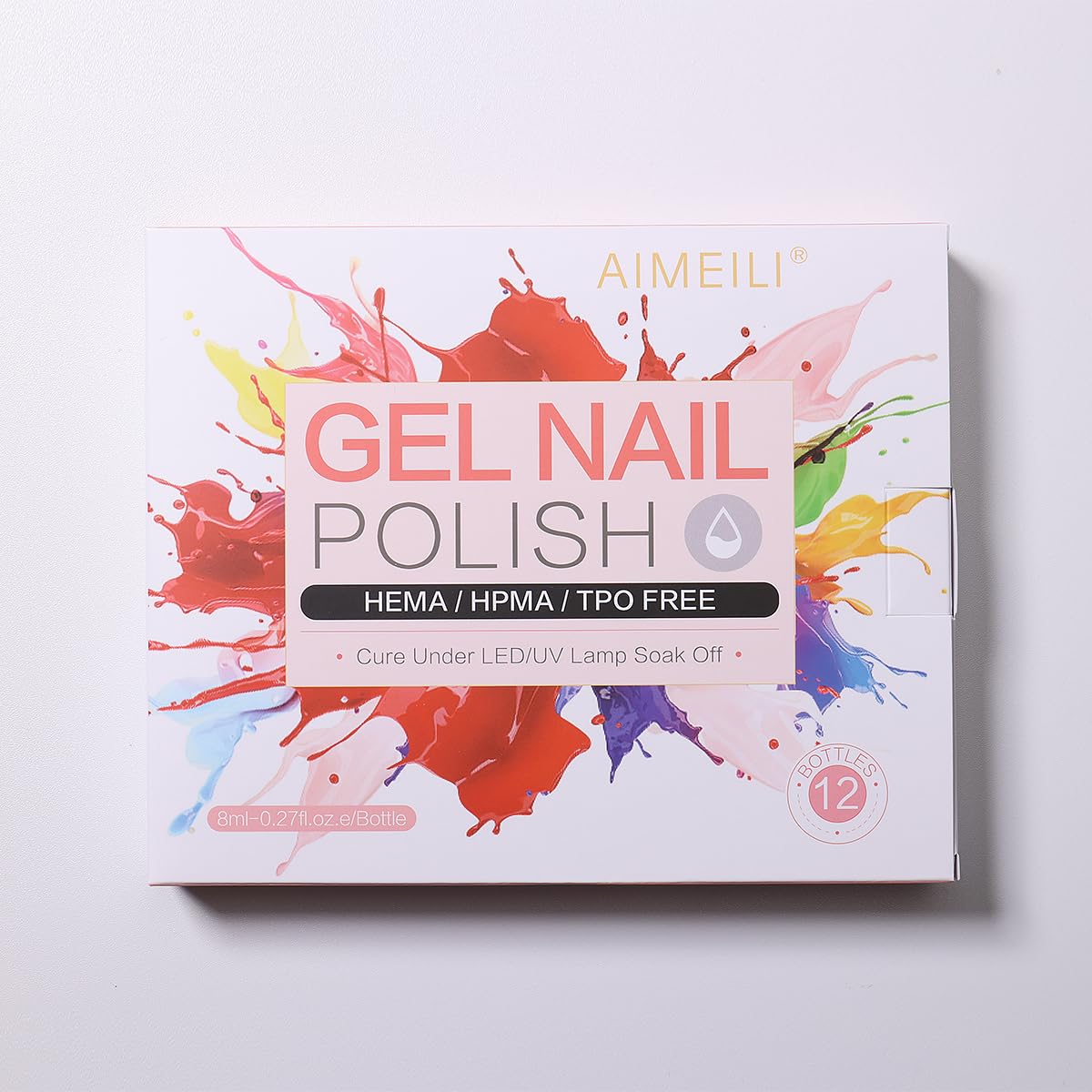 AIMEILI Semi-permanent Gel Nail Polish Kit UV LED Colored Gel Nail Polish for Manicure Soak Off Gel Polish Set 12 x 8ml - Set Number 1