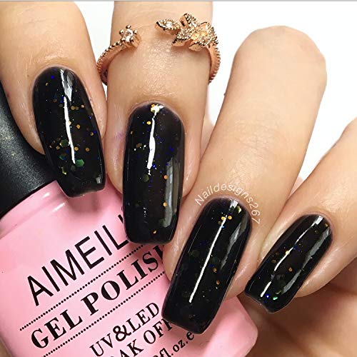 AIMEILI Semi-permanent UV LED Gel Nail Polish Nail Polish Manicure Colors with Glitter - Black Diamond Glitter (050) 10ml
