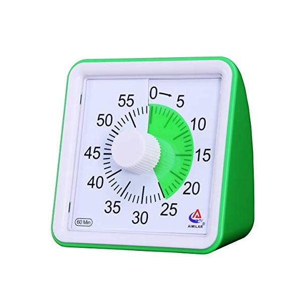 AIMILAR 60 Minute Visual Timer - Silent Timer Time Management Tool for Classroom or Meeting Countdown Clock for Kids and Adults (Green)