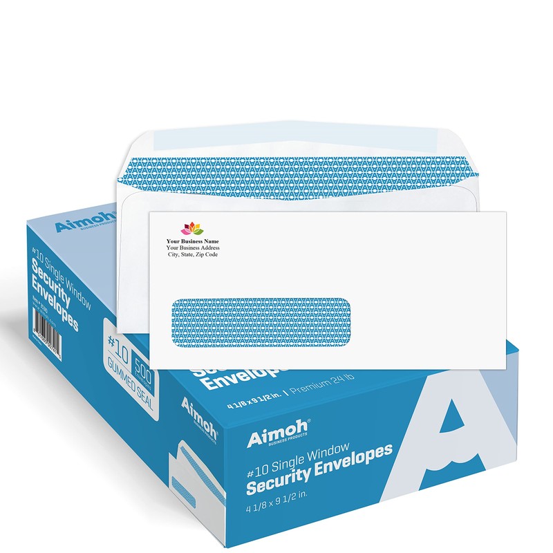 Aimoh 500#10 Custom Printed Single Left Window Envelopes - Text and Logo Customization - Gummed Closure - Size 4-1/8x9-1/2 Inches -24LB-500 Count (7-35310)