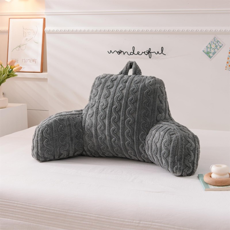 Aimuan Reading Pillow Bed Rest Wedge Backrest Pillow with Arms Back Support for Sitting Up in Bed Cushion Incline Rest Sleeping Snoring Pillow (Grey)