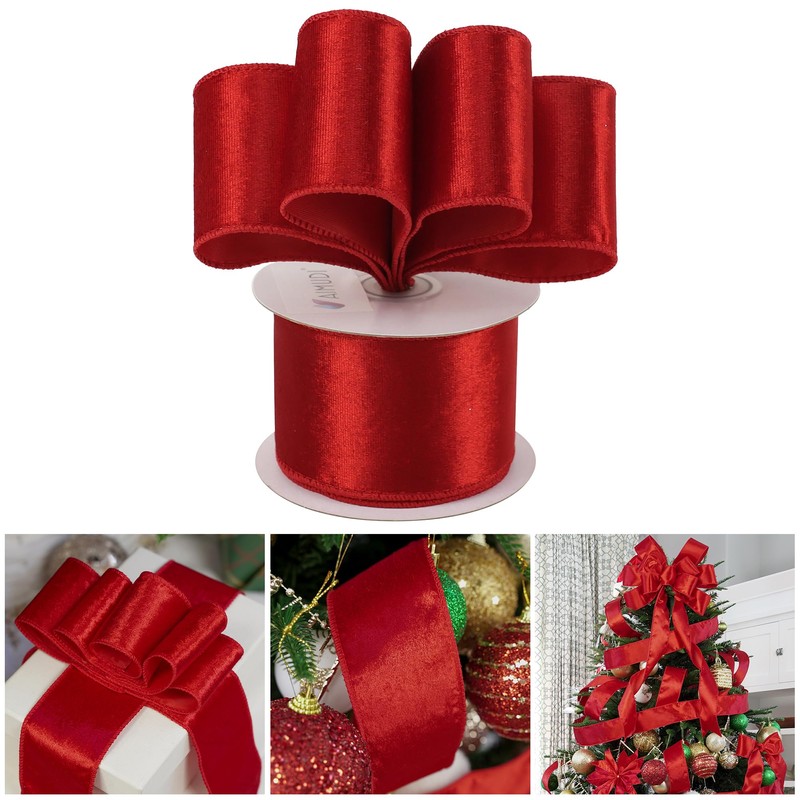 - 🎄[Elegant and Versatile]: Nothing says Christmas is here like spools of holiday ribbon, this Red Velvet Wired Ribbon will add beauty to any home. In hues of red this item is perfect for wrapping gifts, accenting decorations like wreaths and Christmas trees.