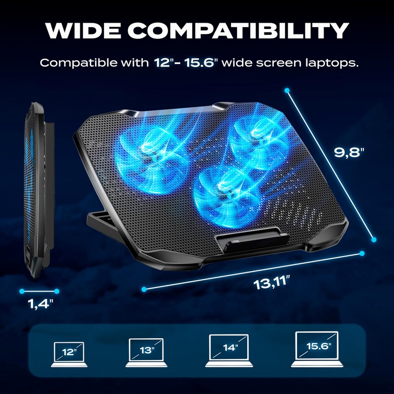 - Optimized Airflow: The triple-fan configuration ensures maximum airflow around your laptop, maintaining a consistent and cool operating temperature for enhanced performance.