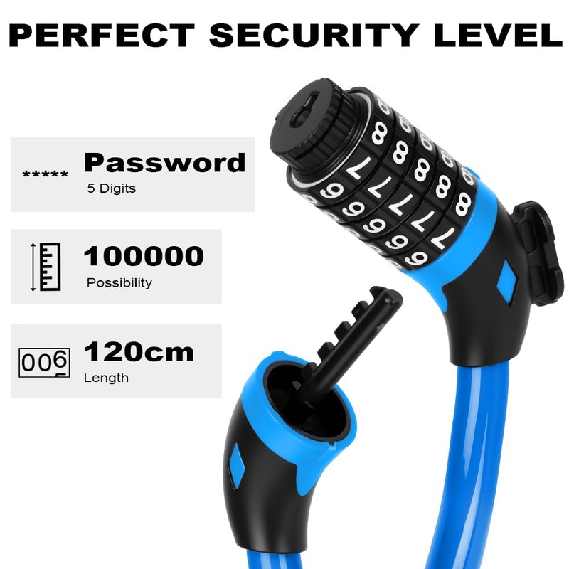 - 【High Security And Durable 】The bike lock is equipped with a 5-digit password lock. It supports 100,000 password combinations (default password 00000), has a strong inner core protection, is safer than ordinary bicycle locks, and has better anti-theft effect. With PVC coating, our bike locks prevent scratches on your bikes, grills, golf carts, suitcases, etc