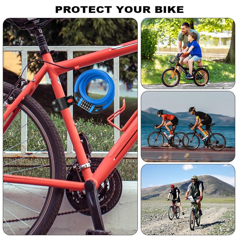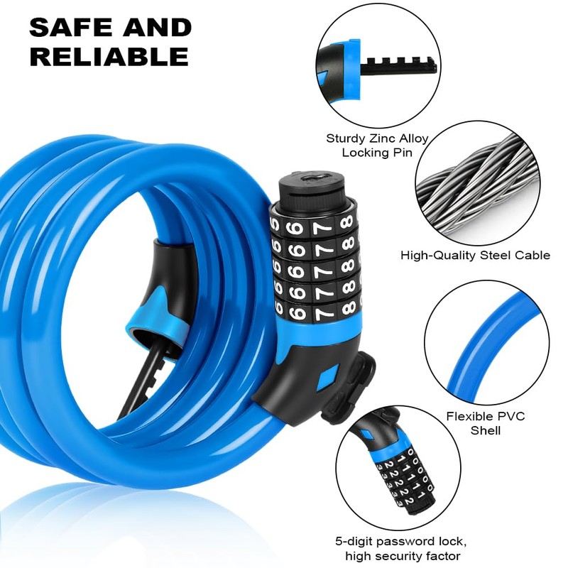 - 【High Quality Password Lock】The bicycle lock adopts zinc alloy lock core + high-strength thickened steel wire rope, with a total length of 120 cm. The steel wire rope is wrapped in a PVC shell, which is rust-proof and prevents unnecessary damage to the bicycle. The lock core is made of zinc alloy to ensure its impact and drop resistance
