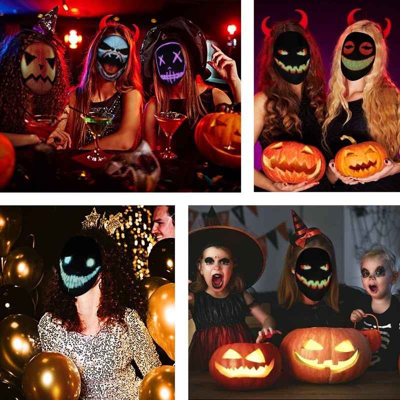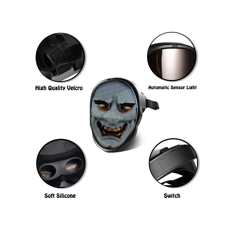 • 【Cool Led RGB Full Color Mask】: The Led mask adopts high-gloss 2074 light beads and 2121 RGB LED light beads, which can achieve the perfect display of animated patterns. Led light-up masks have 45 dynamic display modes and 70 static display images and even upload photos taken, led face masks are very suitable for cosplay, electronic music festivals, birthday parties, Halloween, Christmas, and other events. Led Bluetooth mask can make you stand out at all kinds of parties, and festivals!