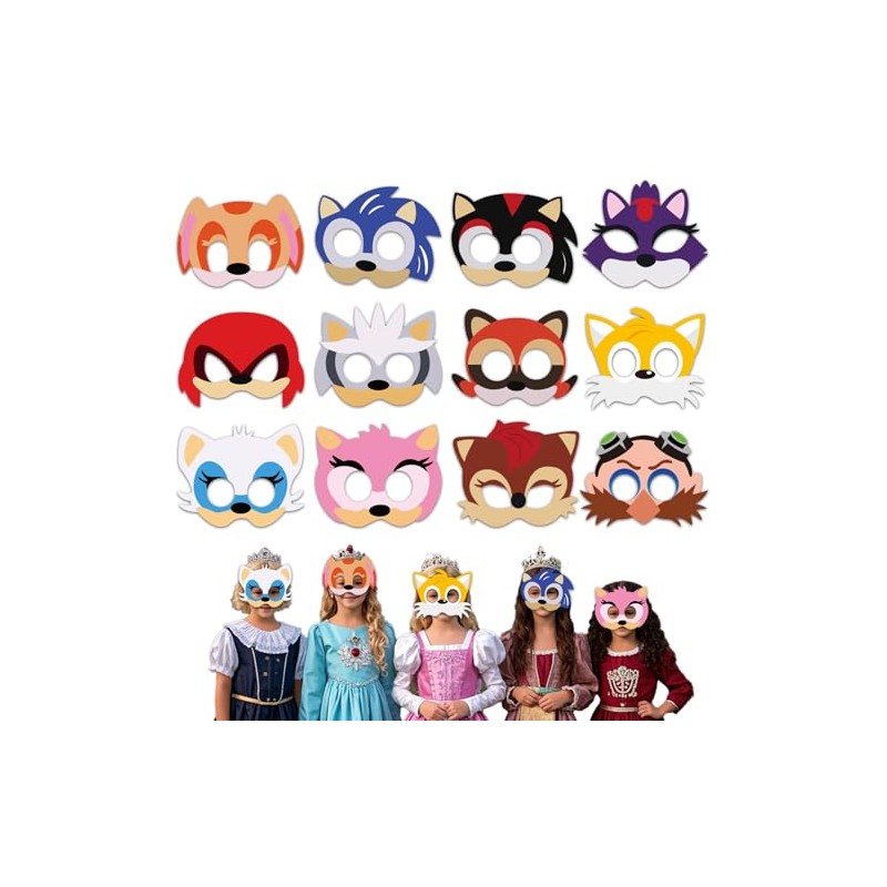 Ainvliya Pack of 12 Soni Party Masks, Birthday Masks, Cosplay Party Decoration for Children, Masquerade, Cosplay, Carnival, Christmas (Blue)