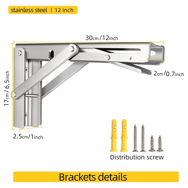 Installation is fast and simple with included screws and anchors. Suitable for wood, brick, or cement surfaces. These folding wall brackets are a must-have for any DIY or space-saving project.