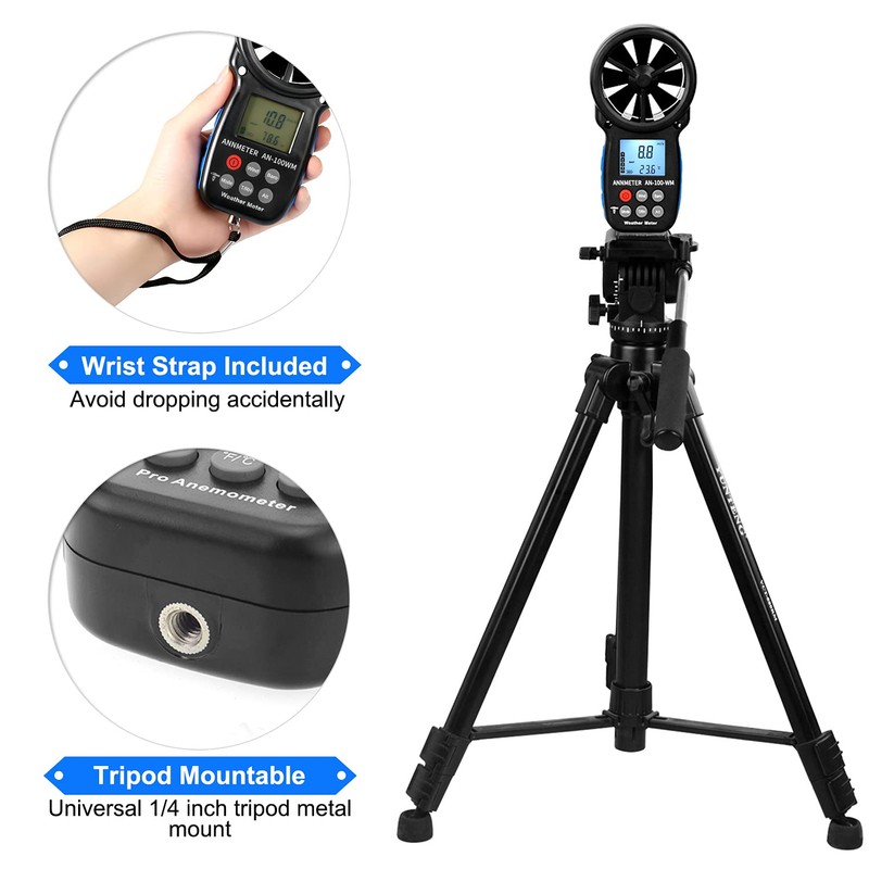 - Handheld and Fixed Measurement Supported-Compact and lightweight, perfectly fits your hand, rubberized protective casing reduces damage caused by falling. Fix on tripod with mounting port at the bottom perfect for a variety of outdoor activities such as long-range shooting, hunting, sailing, kite flying, drone piloting, and CFM air flow testing to current/Max/Min/Average wind speed measurement.