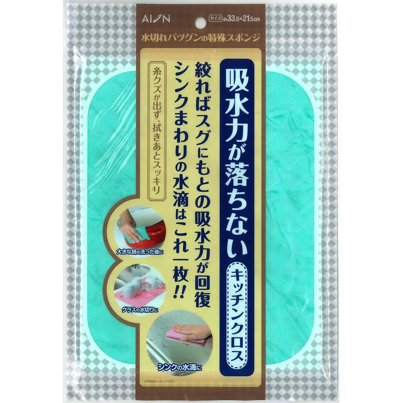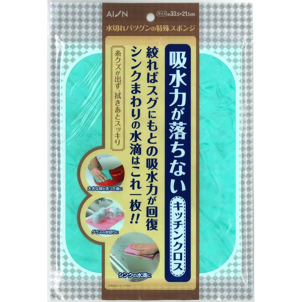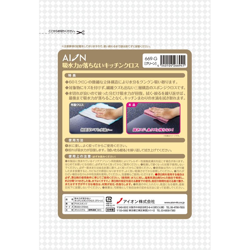 Aion 669-G Kitchen Cloth, PVA Sponge, Green, 13.2 x 8.5 inches (33.5 x 21.5 cm), Water Absorption Power Will Not Lose, Restores Its Original Water Absorption as soon as you wring it out, Water Drop