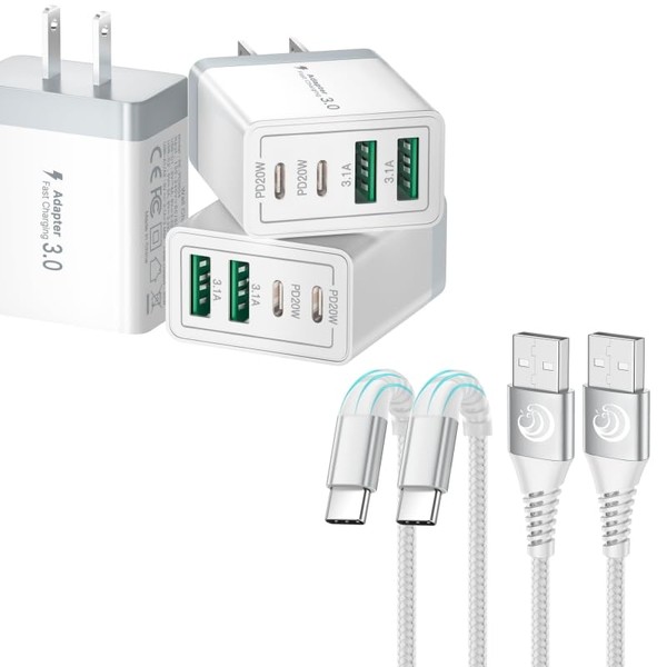 Aioneus 2-Pack USB C Cable 6FT + 3-Pack Charger Block