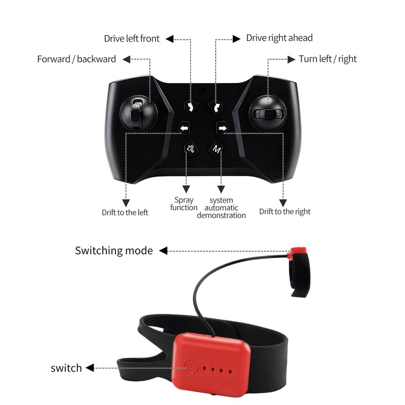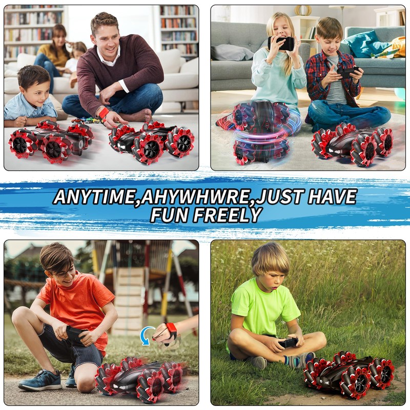 - [Multiple gameplay] AIQI gesture sensing remote control stunt car is equipped with a remote control and a sensing watch. Control the car with a watch or a remote control, and the stunt car will move forward/backward/rotate/spray/automatically demonstrate. Pairing with color changing lighting is more fun for both boys and girls, whether it's day or night, indoors or outdoors.