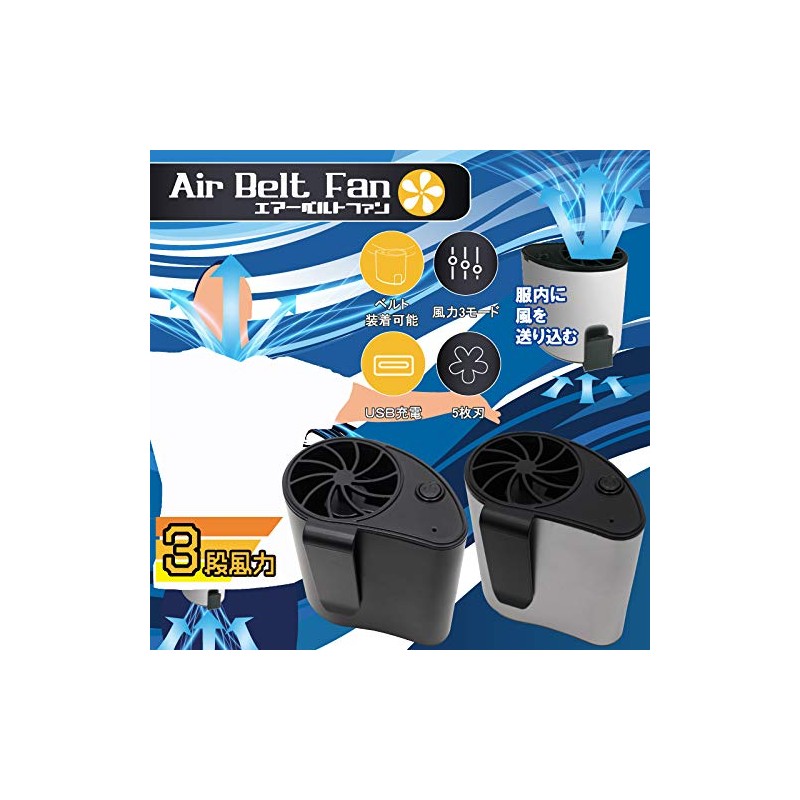 The wind is sent inside the clothes to make it comfortable during the hot summer. [Features] A compact fan that can be attached to the belt to send wind from below. It can be attached with a clip, so you can use both hands conveniently. When you put your clothes on the top, the wind will blow into your clothes and keep you cool at the same time. Convenient for outdoor events and working in the kitchen on hot days. Specifications: Charging time (approximate): 2 hours or more / Continuous usage time (approximate): 1.5 - 3.5 hours (usage time varies depending on the environment and air flow); Wind power mode: 3 levels, 5 blades; Do not use in places with water or damp water, or in bathrooms. This may cause the product to malfunction. Please do not move violently during use. This may cause them to fall down. The disposal of the main unit is built in lithium batteries, so please follow the disposal of the local municipalities. Please do not disassemble or repair, etc. Please do not use this product by children under 7 years old.