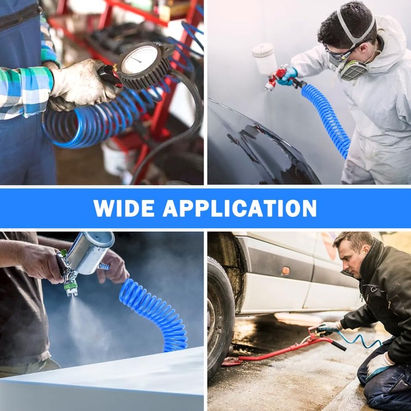 【WIDE APPLICATION】32.8ft long hose adapts to more scene needs, high and low temperature resistance, suitable for use in any environment, suitable for all pneumatic equipment in work sites, construction, garages, factories, etc.