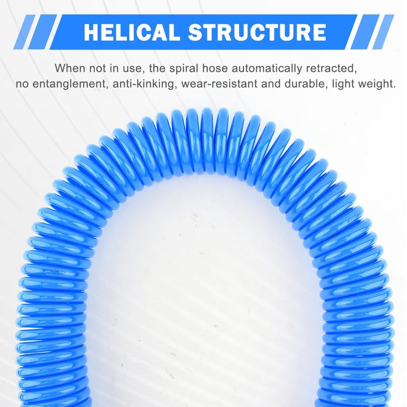 【EASY TO CARRY】Spiral hose design, easy to stretch, will automatically bounce back to save distance and convenient storage. Easy to carry, bright blue color is easy to attract attention, so you can easily find it.