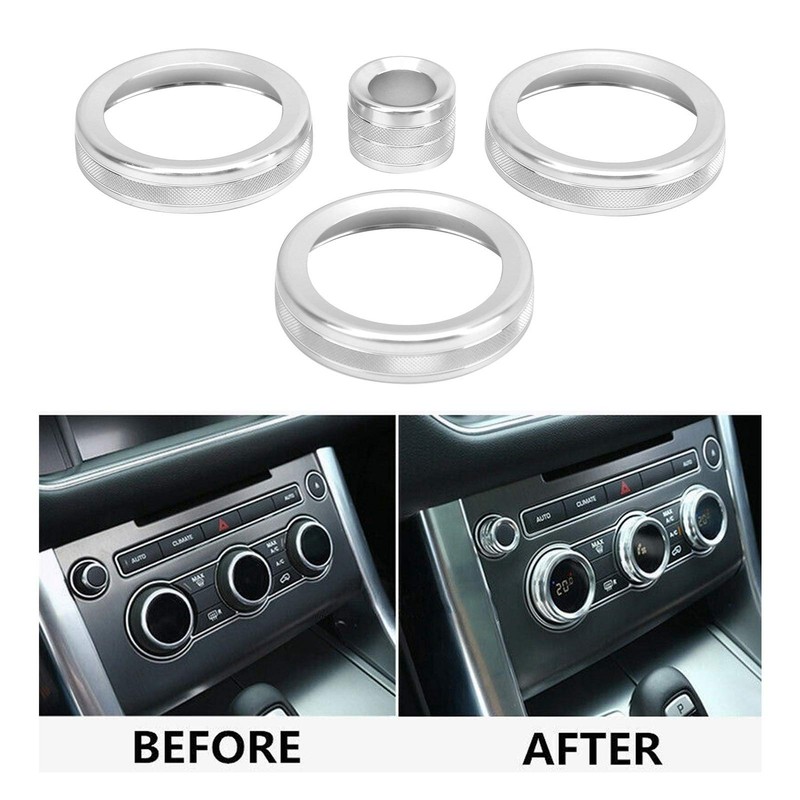 Air Conditioning Knob Ring,4Pcs A/C Knob Ring Trim Volume Adjuster Decor Replacement for R Evoque 2012 2018(Silver)