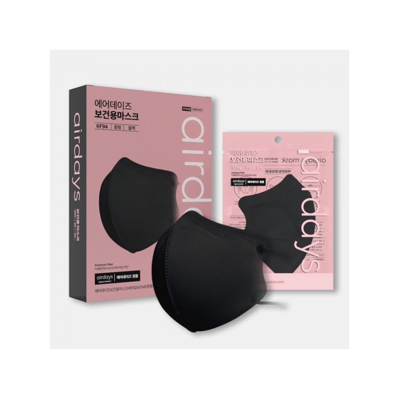 Air Days Mask KF94 Bird-beak type droplet blocking large medium small 30 sheets, black medium wide / 에어데이즈 마스크 KF94 새부리형 비말차단 대형 중형 소형 30매, 블랙 중형와이드