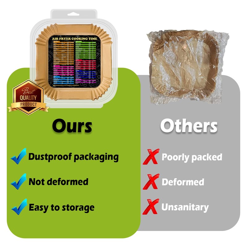 - 🍔【Easy to Use】These non-stick disposable air fryer liner are designed with a square bowl shape, which do not need to tear, fold, cut, nor bend. Notice: Do not use this liner in pre-heat mode without food.