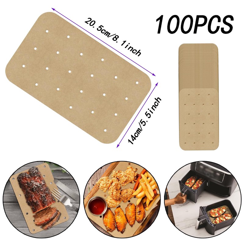 - Great Fit for Most Air Fryers – Designed to fit most basket-style air fryers with dimensions of 20.5x14cm (8.1x5.5 inches), each pack includes 100 durable sheets to support regular use. Be sure to check your appliance size before ordering for seamless compatibility.