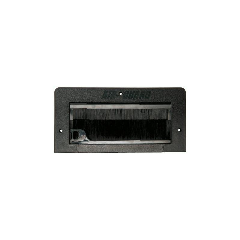 The new Air|Guard Cable Seal helps prevent air loss in plenum cooled floors when access holes are required when cables being routed through the floor. An immediate “energy-savings” benefit is realized by using the Air|Guard. It significantly minimizes cool air loss while improving the static pressure to cool data center equipment which helps prevent expensive electric equipment from overheating. The overlapping brushes in Air|Guard's unique design allow flexibility and simplicity in cable routing. The brushes seal the floor openings, preventing debris from entering the air plenum and causing damage to sensitive electronic equipment. The Air|Guard is easily installed in any location on a floor panel. Two can be interlocked and installed on the floor panel to accommodate a variety of cable sizes. In-floor mounted rigid plastic. Removable section allows easy cable release. 6.25" long" x 12.75" wide x 1.5 deep". Flame retardant. Includes mounting hardware and cutout template. Color: Black.