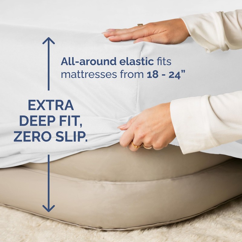 - TAILORED FOR EXTRA DEEP POCKET AIR MATTRESSES: Our fitted sheet is specifically engineered with a strong elasticized edge to securely fit air beds up to 24 inches deep, ensuring a snug and secure fit every time.