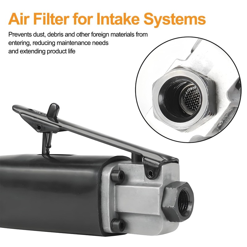 • SAFETY DESIGN: The pneumatic tools has a built-in safety trigger design; it can prevent incorrect operation, and the surface is covered with non-slip rubber, which can reduce cutting vibration