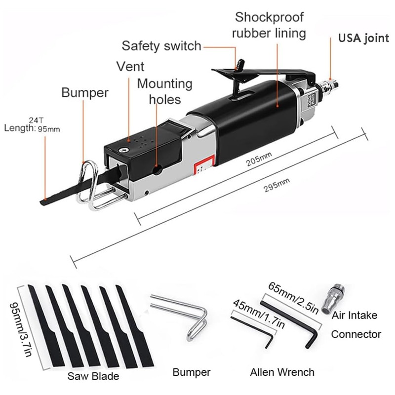 • CONVENIENT OPERATION: This pneumatic reciprocating saw is easy to carry and operate, and the low vibration function makes the mini saw operation easier
