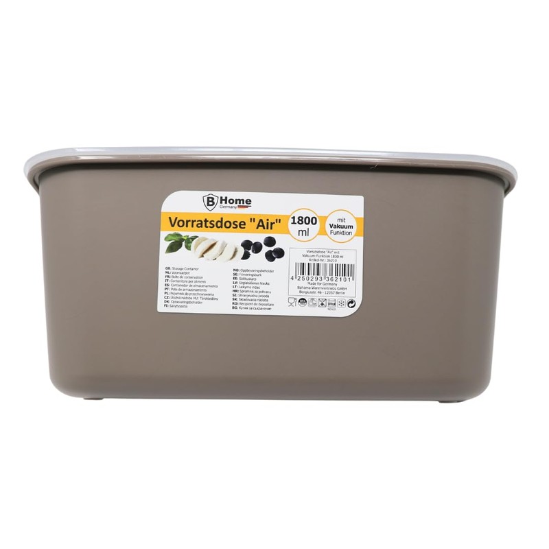 - Search terms: storage container, 1800 ml, vacuum function, brown, "Air"