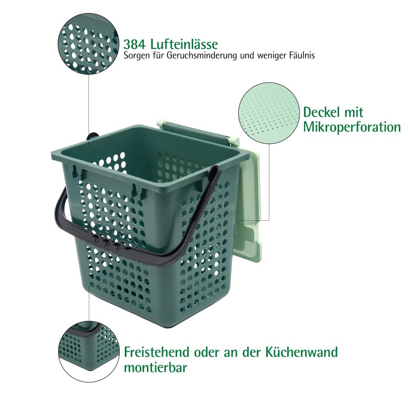 • The holes in the organic bucket and lid support air circulation and thus help to minimise unpleasant odours of organic waste - also the number of fruit flies is drastically reduced