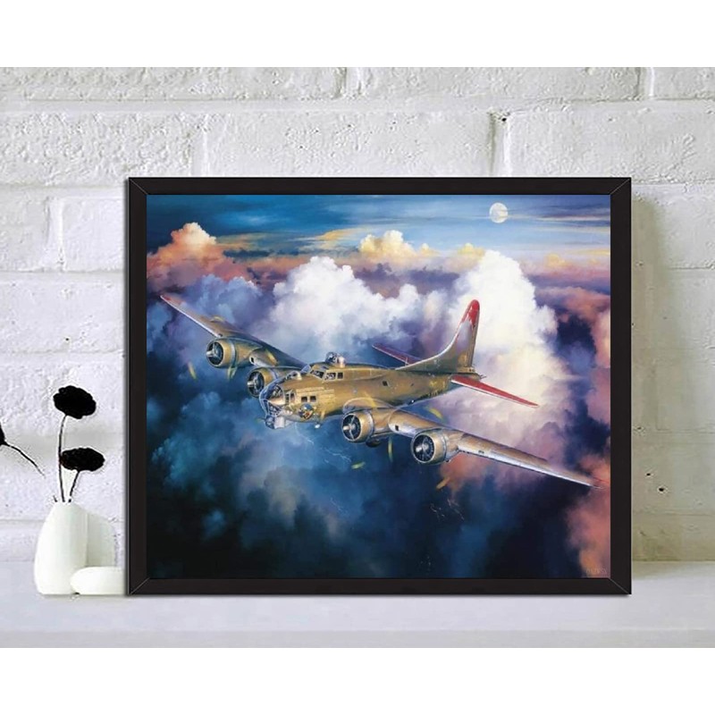 Aircraft Private Jet Space Shuttle Plane Sky 5D Diamond Painting Kits for Adults Beginners, Fighter Airplane Bomber DIY Round Full Diamond Mosaic Set Crafts Paint by Number Kits, 30x40cm/12x16in