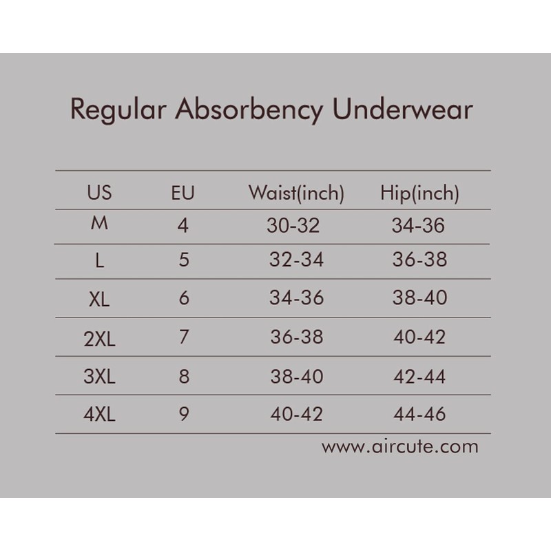 • SOFT COTTON & FULL PROTECTION: 95% Cotton 5% Spandex. AIRCUTE absorbency underwears for bladder leaks are made with breathable cotton and an stretchy waistband for extra comfort. It is a full protection for moderate or heavy leakage, looks and feels like your everyday regular underwear
