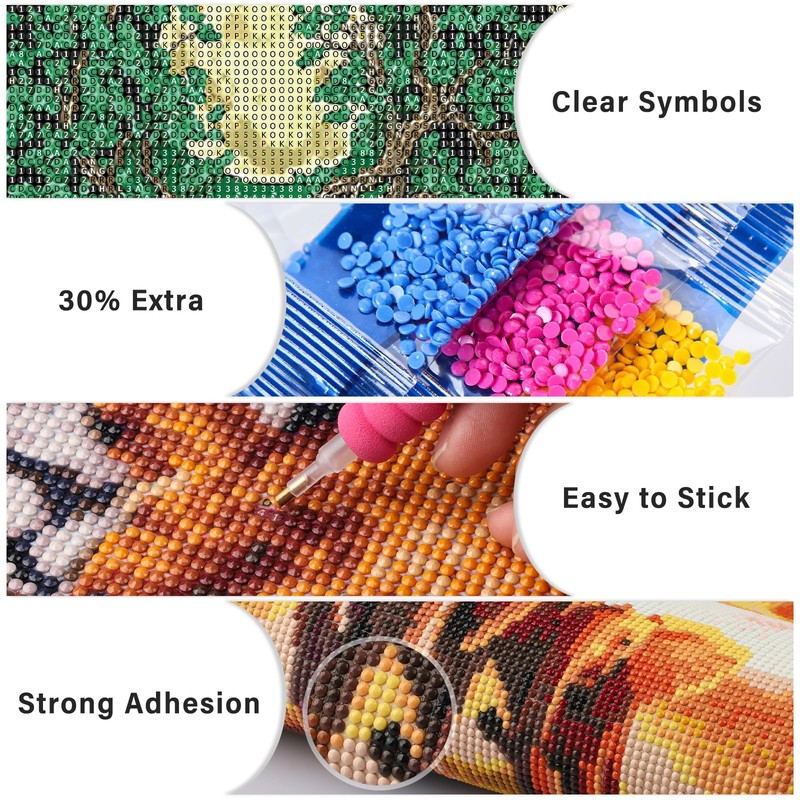 - Amazing Canvas: There are clear numbering symbols and easy-to-follow instructions on diamond art painting kits with vivid colors; Canvas is highly viscous without diamonds coming off easily and it can be stored for a long time