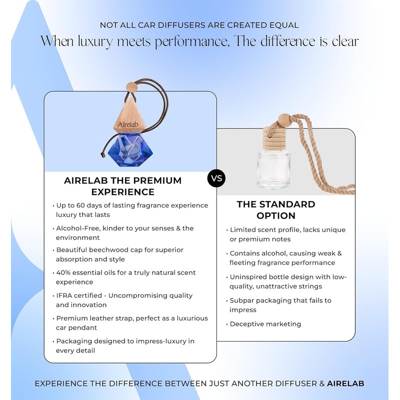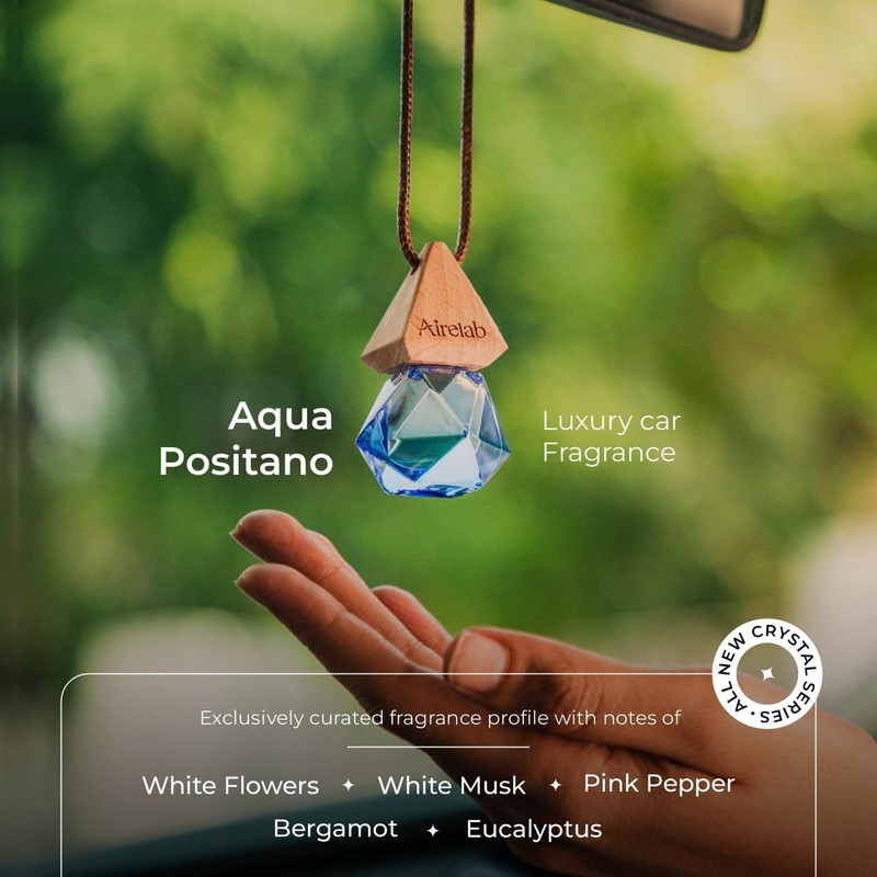 Airelab Car Perfume Diffuser Aqua Positano in Vibrant Blue Crystal Pendant | Premium Seaside Notes 40% Imported Essential Oils | Alcohol-Free, 60-Day Freshness |Eliminates Odors & Dampness