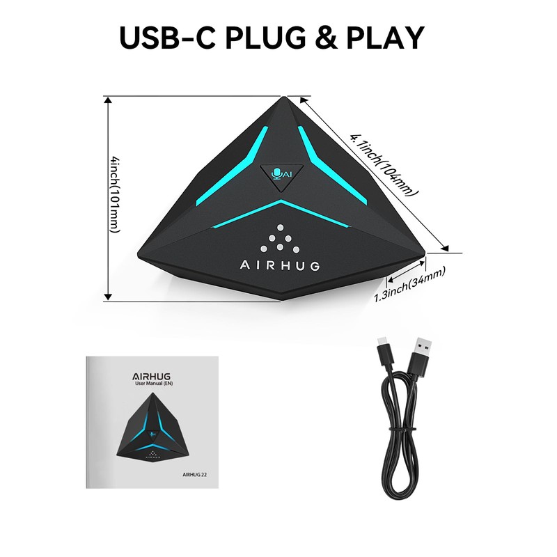 • Compact & Portable Design - The portable size allows you to easily take AIRHUG 22 mic anywhere. Dimensions: 4 x 3.97 x 1.35 inches (lightweight at 0.28 lbs). Includes a 4.9 ft USB cable. The microphone base is with an anti-slip mat which keeps it stable on desktop