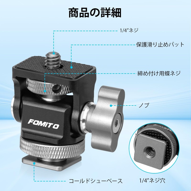 - Lightweight and durable construction: Made of high quality aluminum alloy material, the surface is antioxidant treatment, so it will not rust even after long-term use. The mini size mount adapter is 4.8cm tall, weighs only 45g, lightweight and very convenient to carry